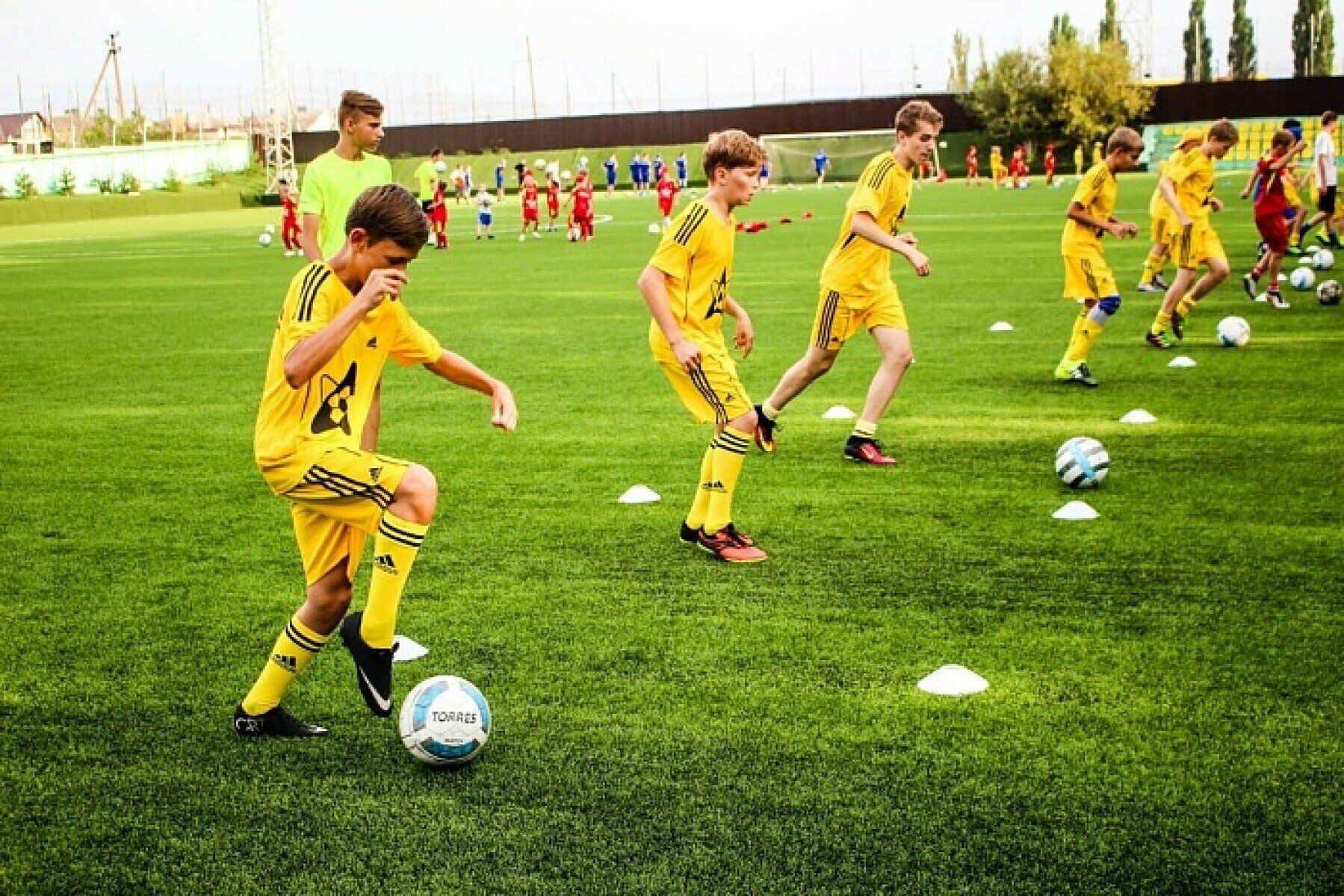 Программа лагеря разделена для детей разного возраста и уровня футбольного мастерства. На тренировках дети готовятся физически: бегают, растягивают мышцы. Тренируют обводку, обращение с мячом, технику ударов. Вечером проводятся двусторонки и соревнования с призами. Все тренера являются сертифицированными специалистами Adidas.