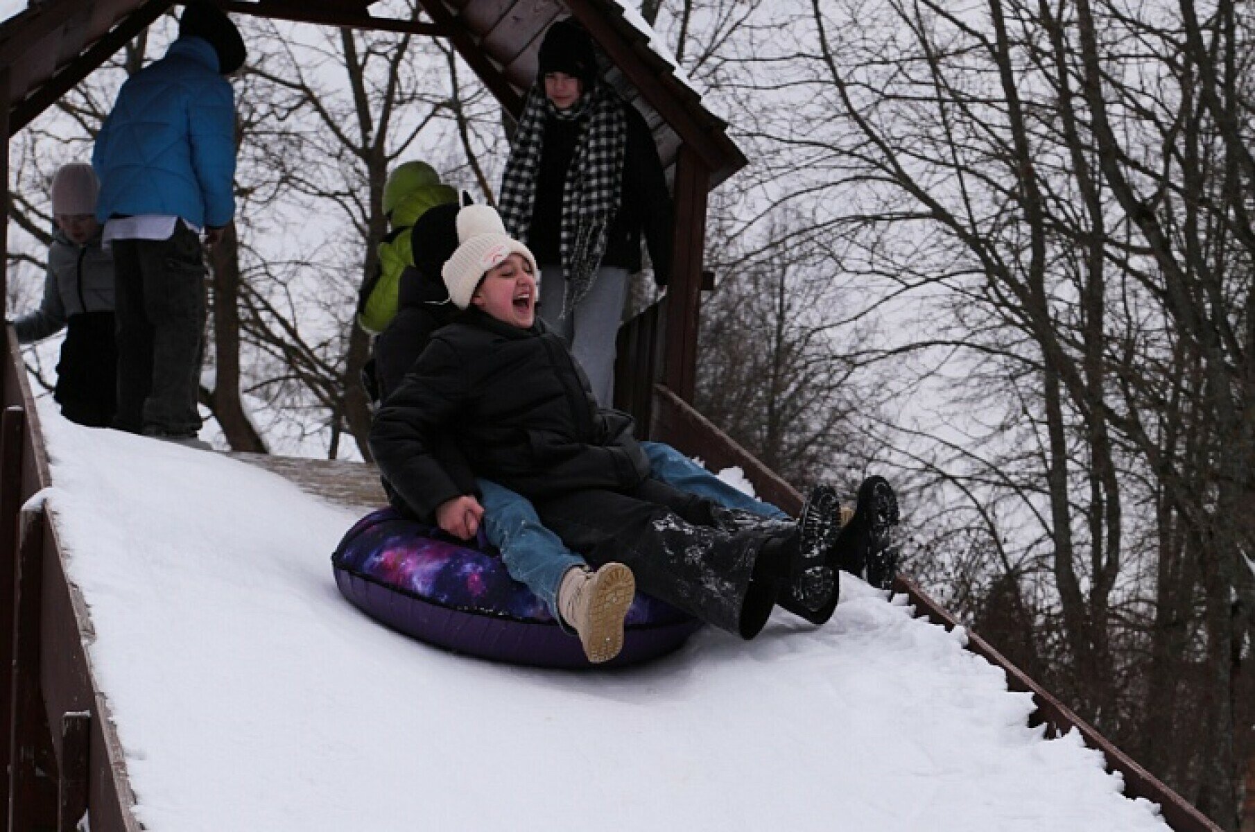 Ежедневно не менее 2-3 часов мы проводим на улице. Детям доступны все зимние развлечения – катания на тюбингах с горки, катание на коньках и лыжах.