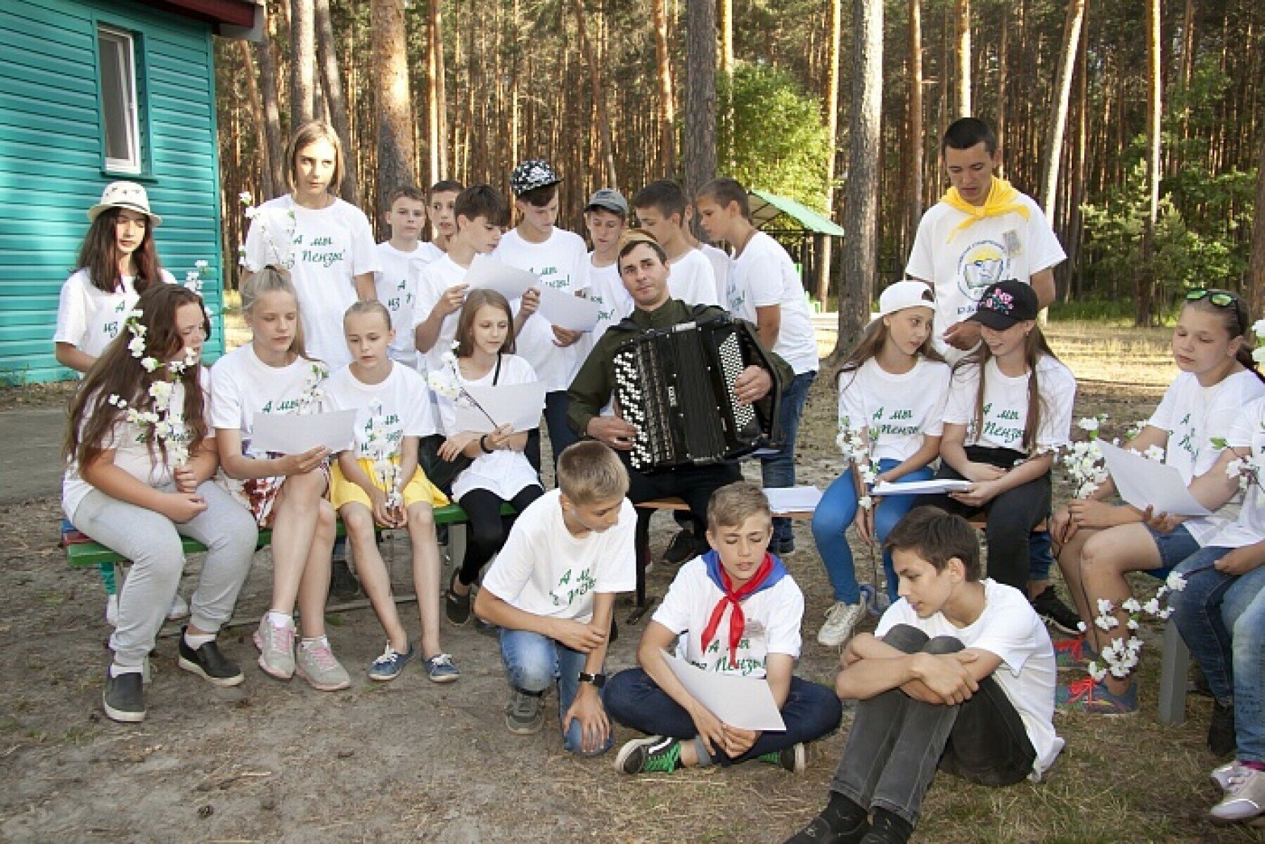 ДОЦ «Белка» расположен в сосновом лесу, на берегу реки Вядь.
