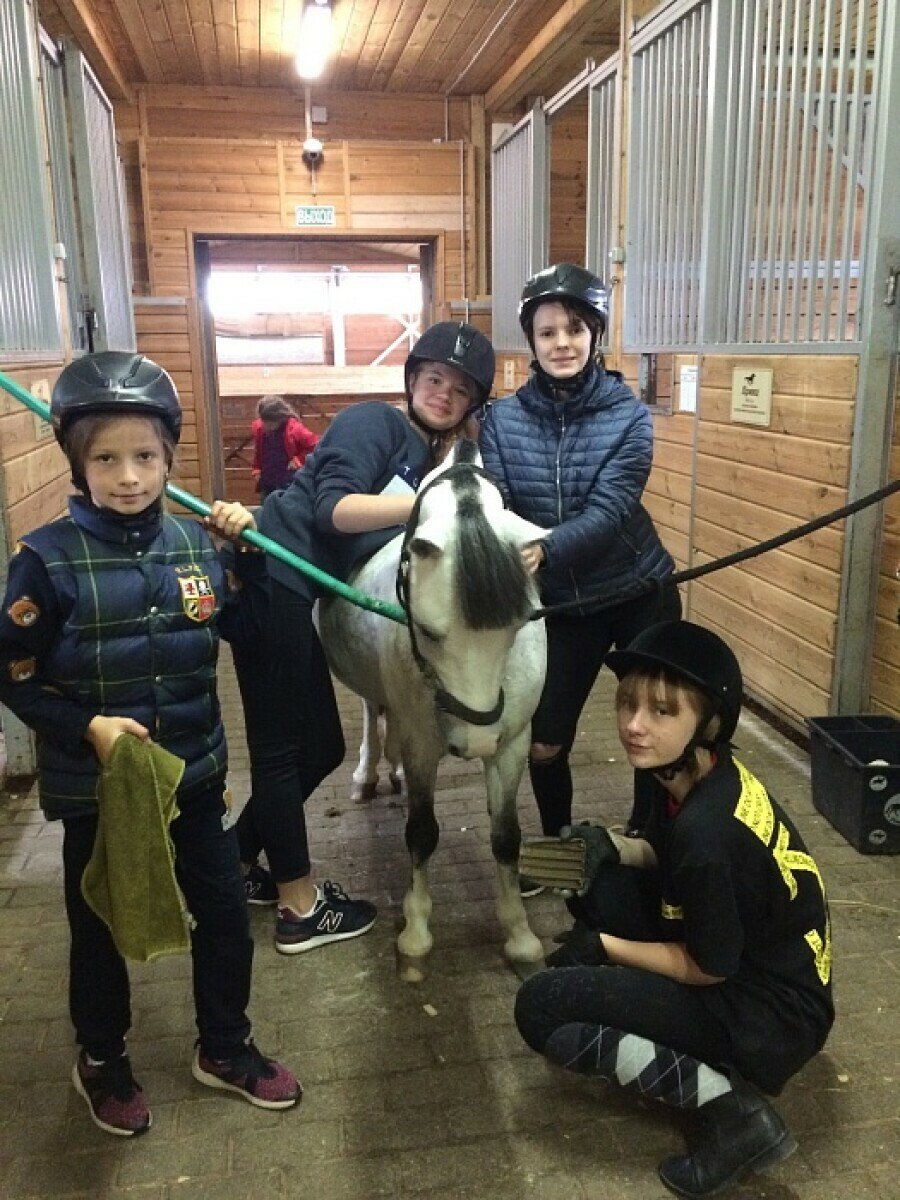 В программе лагеря интенсивные занятия конным спортом. Дети знакомятся с повадками лошадей, учатся понимать и ухаживать за ними. Проводится инструктаж по технике безопасности и практические занятия в зависимости от уровня подготовки ребенка. Для опытных всадников проходят мастер-классы по различным видам верховой езды и конкуру. Также в программе посещение конной фермы с кормлением жеребят.