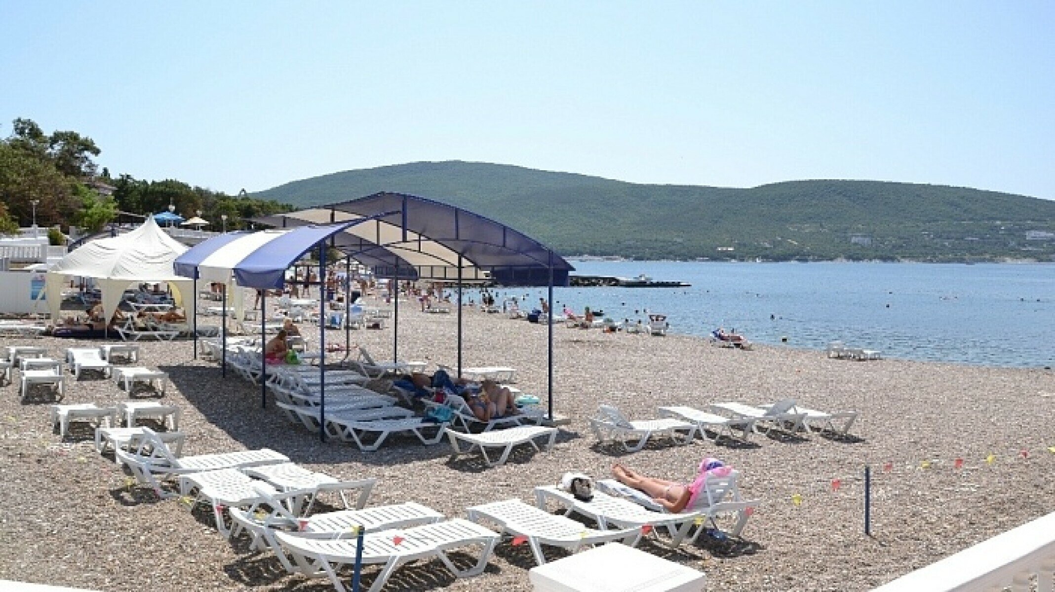 Собственный галечный пляж лагеря расположен в 150 метрах от территории. Пляж оборудован, дежурят спасатели, плавруки, медицинские работники.