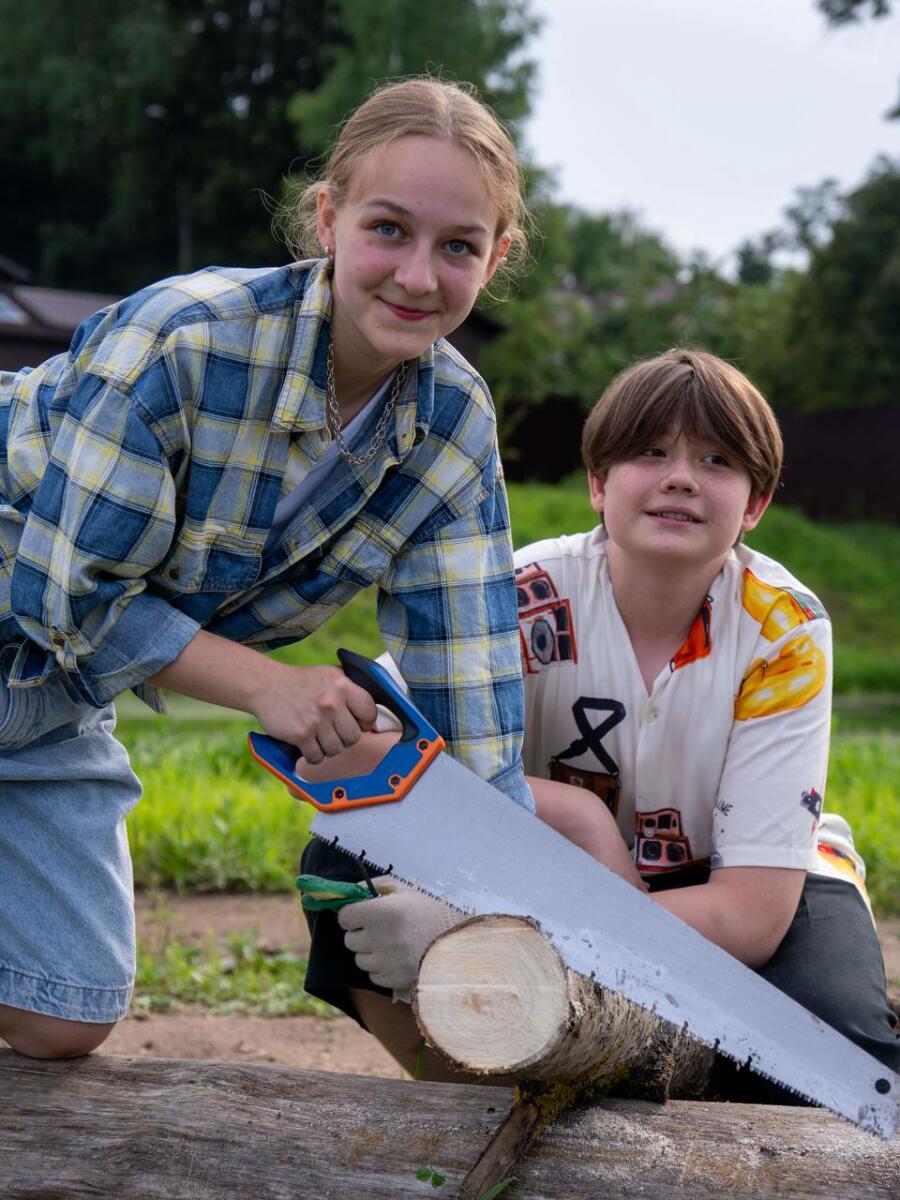 Живой отдых на улице: постройка шалашей и укрытий, резьба по дереву, офлайн-приключения в формате настольной ролевой игры D&D, где подростки становятся героями собственных историй.
