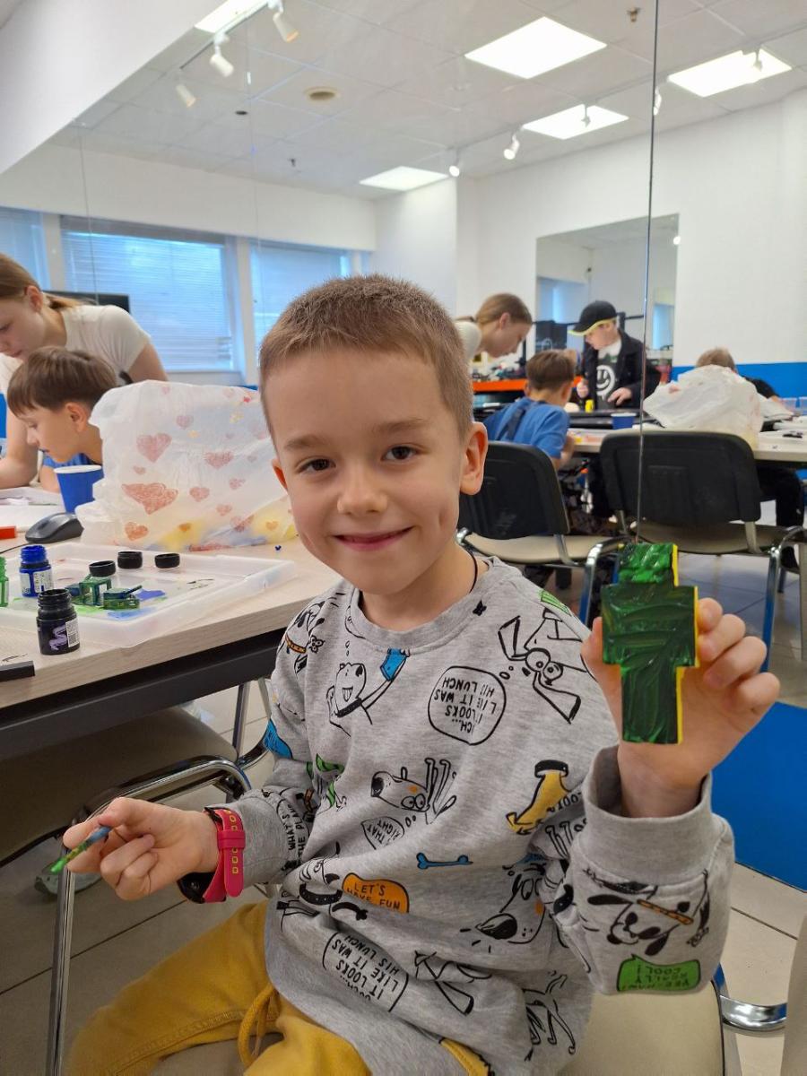 Вы видите увлечённого ребёнка, который с интересом рассказывает, что он придумал и сделал сам.