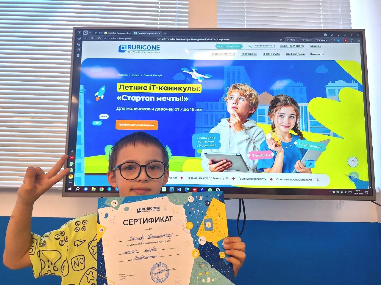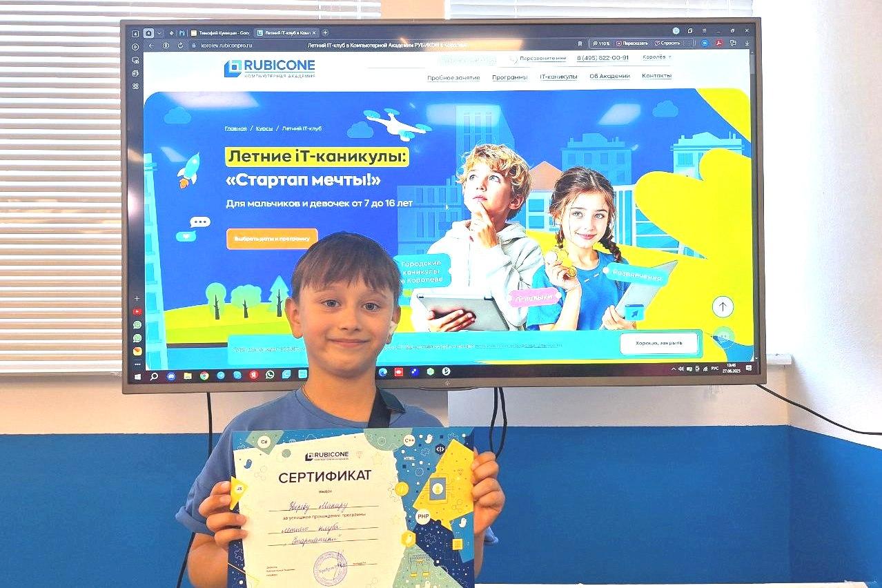 Летние компьютерные каникулы — программа, в которой ребёнок за 10 дней открывает собственную студию разработки (IT-студию) и создаёт цифровой проект от идеи до финальной презентации.