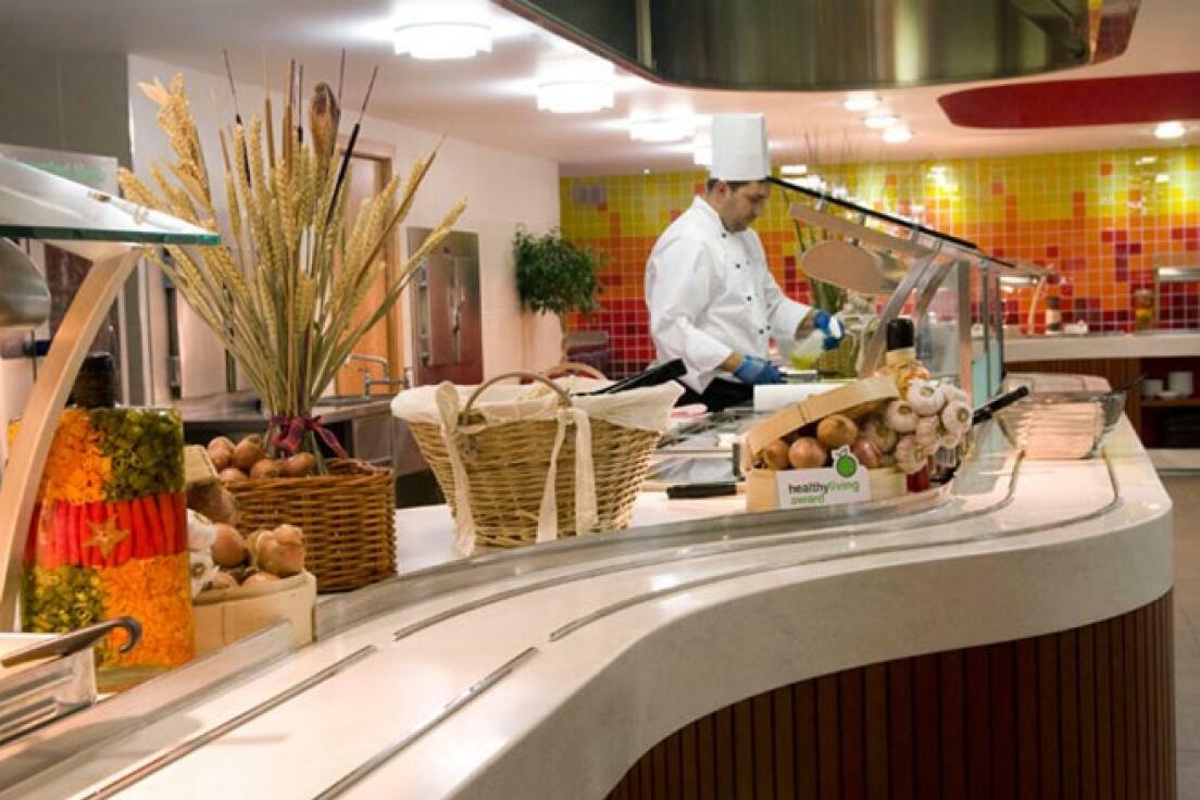 Полноценное трехразовое питание в формате шведского стола в современном университетском ресторане. Меню разнообразное, с учетом детских предпочтений.