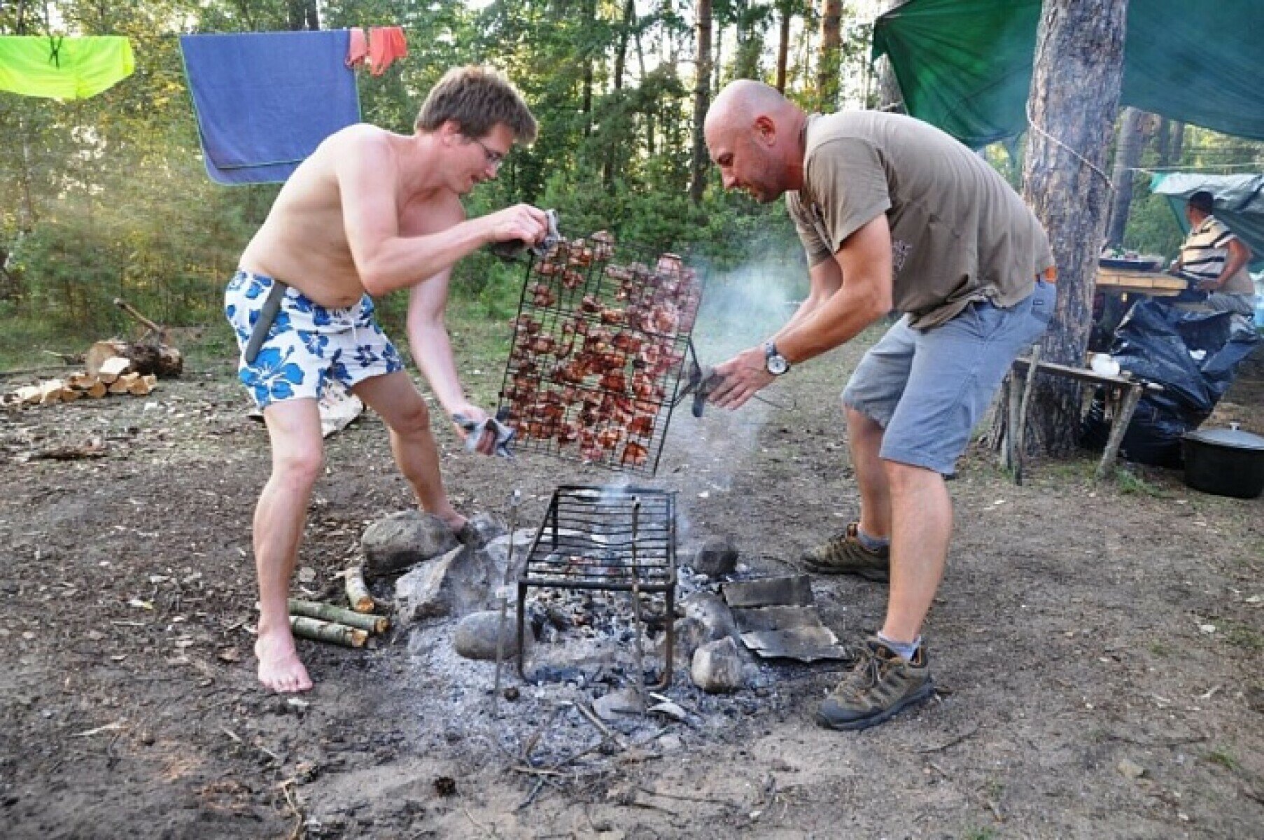 Проживание в базовом лагере на нашем острове или в отеле "Конаково Ривер Клаб" Палаточный лагерь. Лагерь оборудован всем необходимым для комфортного отдыха: большой командный шатер, современные шатровые палатки, камбуз, оборудованный газовыми плитами, тентовые душ, туалет и баня, бензогенератор для зарядки телефонов, спортплощадка.