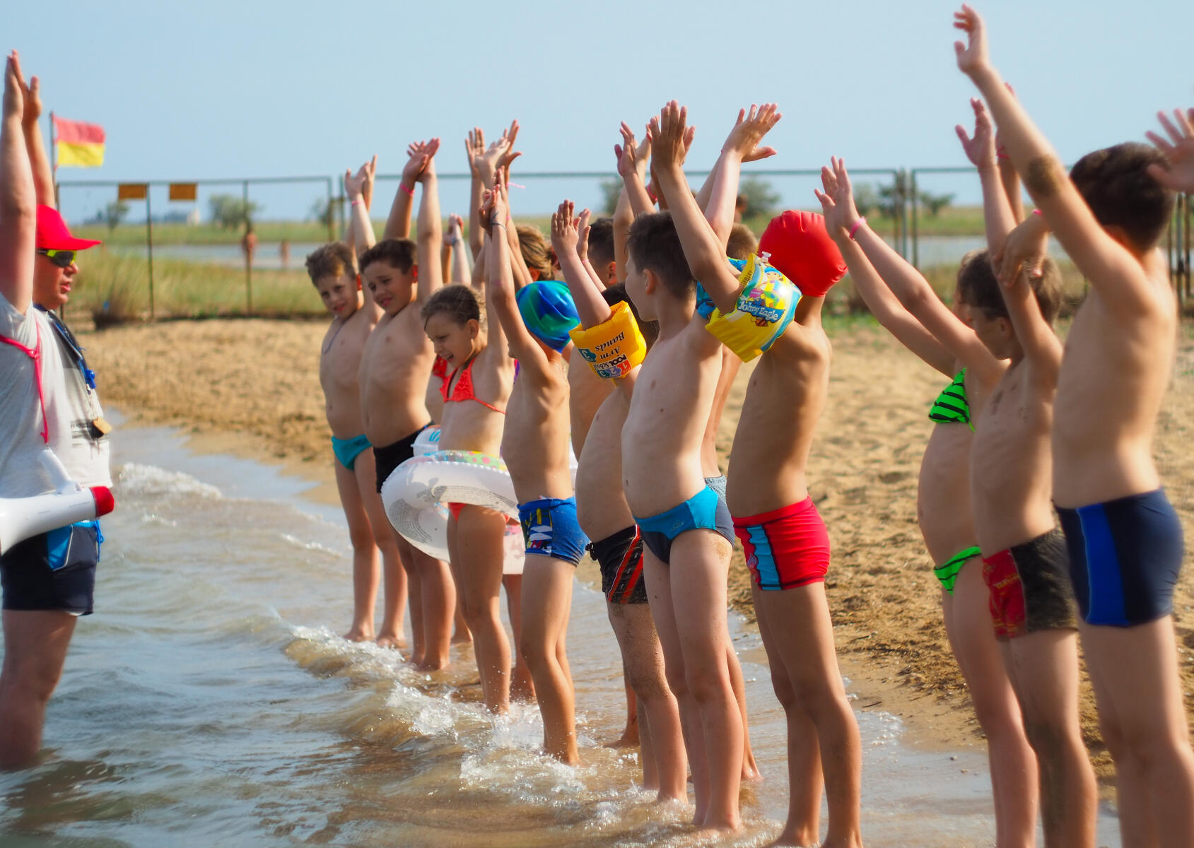 Ребят ждет насыщенная пляжная программа: Веселые эстафеты, спортивные игры и водные состязания, профессиональные аниматоры и зажигательная музыка.