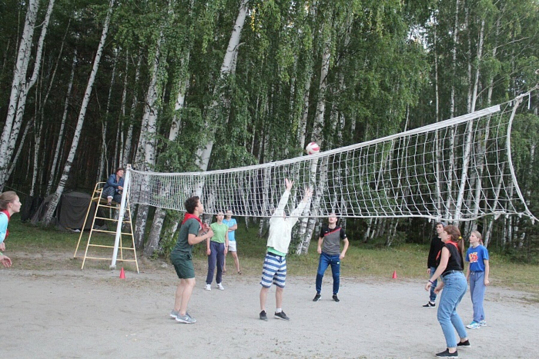 Имеется большая спортивная площадка, включающая в себя: футбольное поле, баскетбольное и волейбольное поле.