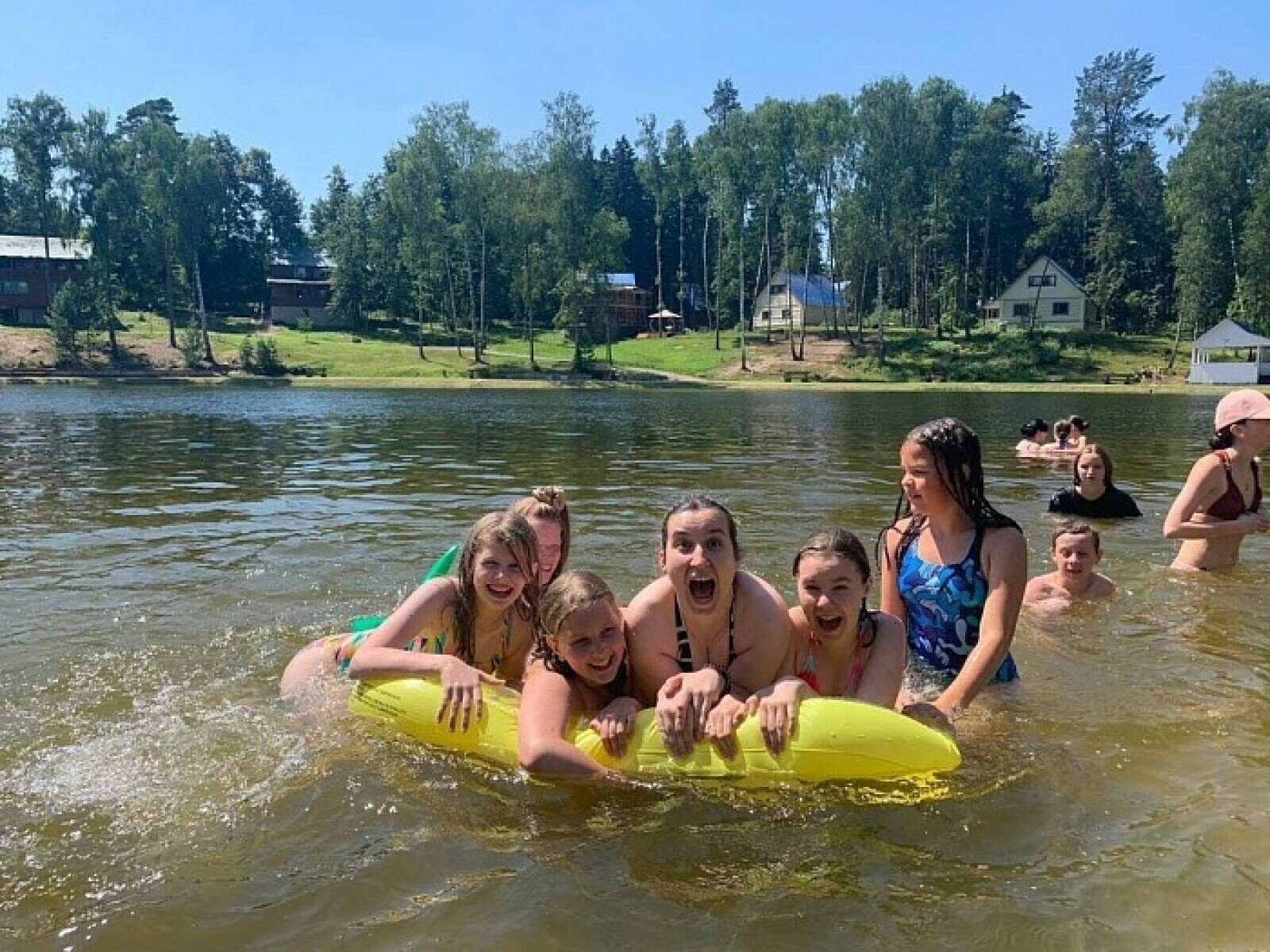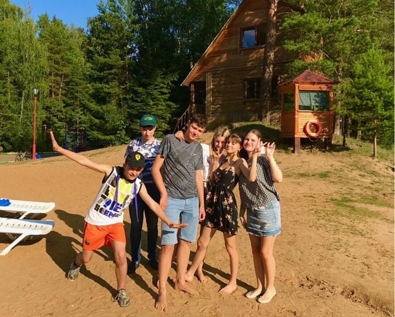 Летняя программа проводится в 44 км от Москвы в Одинцовском районе Подмосковья на территории круглогодичного дома отдыха. Рекалето располагается в 6 коттеджах по 9 ребят и один взрослый. Площадь каждого коттеджа – от 165 кв.м. Ребята распределяются в коттедже по полу и возрасту вне зависимости какой язык они изучают. В соседнем корпусе находится столовая, боулинг, крытый спортивный зал. На территории дома отдыха расположено ключевое озеро с оборудованным пляжем. Озеро не глубокое, спасатели и охрана круглосуточно патрулируют территорию. Проживание: в коттеджах, каждый 9 ребят и 1 взрослого. Уютные номера на 3 человека. Комфортабельный коттедж с централизованным отоплением, горячей и холодной водой. Бревенчатый двухэтажный сруб сделан из ценных пород дерева, внутри полностью обшит «вагонкой». Вся мебель из массива березы. На первом этаже находится: прихожая (2.8х4.0м), туалетная комната (3.0х1.5м), оборудованная угловой душевой кабинкой, раковиной, сан., комплектом, зеркалом и феном. Две спальные комнаты на 1 этаже. В каждой имеется две прикроватные тумбы, шкаф для одежды, зеркало, лампы настольные, коврики прикроватные. Гостиная, переходящая в кухню имеет общую площадь 3.5х 9.0 метров. В гостиной мы занимаемся английским за большим столом, смотрим телевизор. На кухне стоит холодильник, имеется полный комплект посуды (кухонная, сервировочная, столовая). На втором этаже 2 спальные комнаты, каждая на 3 человека и санузел с душевой кабиной. Пол покрыт ковролином. Инфраструктура: