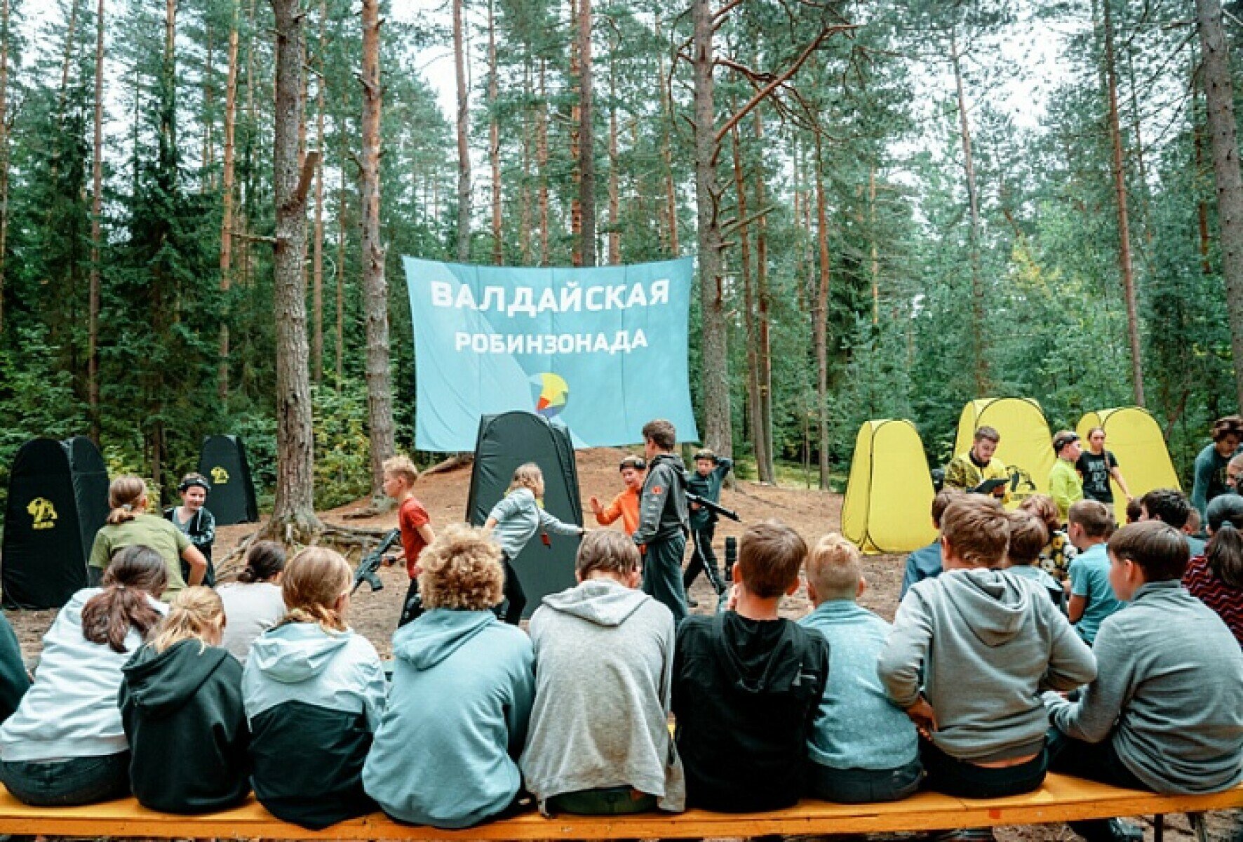 "Валдайская Робинзонада" расположена в еврокемпинге в сосновом бору на берегу живописного озера Вельё в Валдайском национальном парке. Это "маленькая Швейцария", расположенная между Санкт-Петербургом и Москвой, в 140 км к юго-востоку от Великого Новгорода. Это удивительное по красоте место, признано заповедной зоной и является элитным местом отдыха. Природа Валдайского национального парка идеально подходит для детского отдыха и оздоровления: бесчисленное количество вековых солнечных сосен, чистейший воздух, многочисленные реки и хрустально-чистые озера, тишина, нарушаемая только птицами и радостными голосами детей. Море черники, земляники и малины — природная кладовая витаминов! Проживание Участники живут в современных туристических палатках ALPIKA Dakota. Надежные и удобные 3-4-х местные каркасно-дуговые палатки с большим тамбуром и тентом от дождя стоят на приподнятых деревянных настилах. Палатки оснащены специальными ковриками, удерживающими тепло, наматрасниками. Спальники необходимо привезти с собой. Для комфорта участников и утепления на случай прохладных ночей на площадке имеются дополнительные спальники и теплые одеяла. Сверху палатки защищены непромокаемыми тентами — это позволяет им оставаться сухими и теплыми, даже если идет дождь. Под тентами удобно хранить обувь — она не в палатке. Для поддержания порядка в палатке и хранения личных вещей предусмотрены большие пластиковые контейнеры с крышками на каждого ребенка. Инфраструктура "Валдайская Робинзонада" была проведена на территории национального парка летом 1991 года. Сейчас "Валдайская Робинзонада" — это кемпинг европейского уровня с развитой инфраструктурой. Никакие каникулы в гостинице или модном отеле не могут сравниться с удивительным отдыхом в "Валдайской Робинзонаде", где бытовой комфорт сочетается с романтикой природы, близостью с лесом и живописными озерами. Еврокемпинг оснащен всем необходимым для проведения полноценного отдыха:
