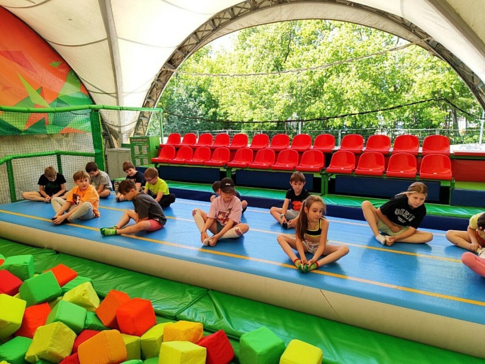 В летний период для детей от 6 до13 лет организуются смены. С 8:30 до 19:00 дети весело и полезно проводят время в компании сверстников и опытных наставников. Занимаются на батутах, йогой, скалолазанием, гуляют и играют в парке, учатся творить на различных мастер-классах. Ежедневно детям организуется трех разовое питание, уход и присмотр в течение всего дня.