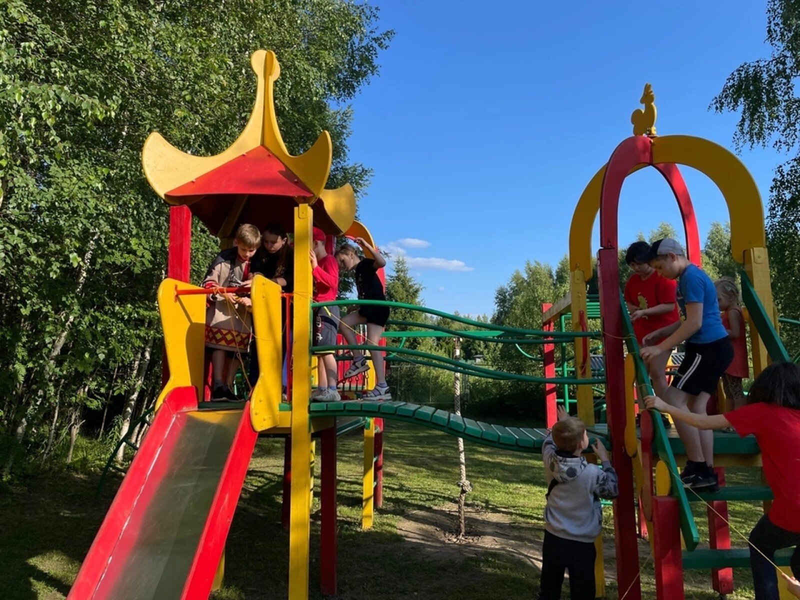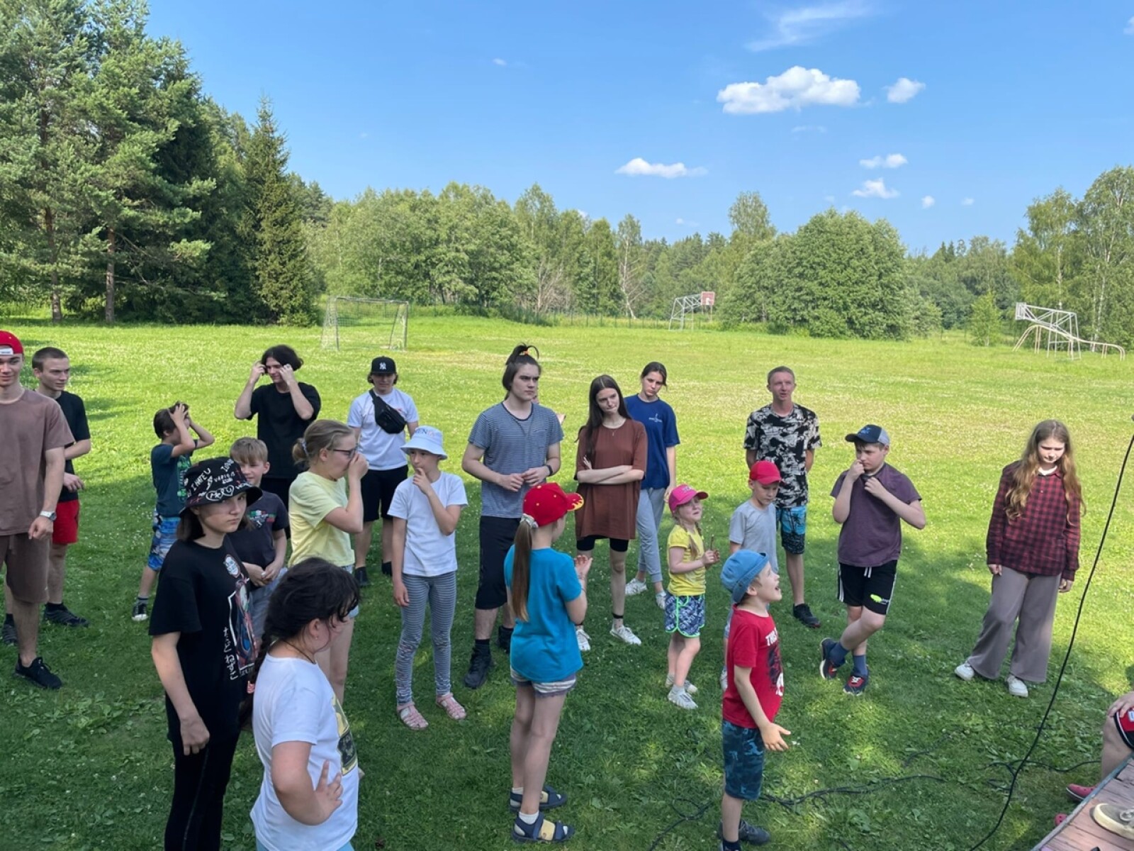 На территории лагеря есть всё необходимое для активных занятий и подвижных игр, что способствует физическому развитию и укреплению командного духа.