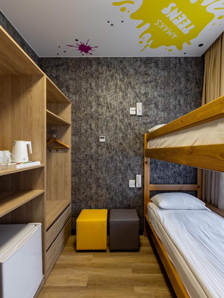 Дети проживают в отдельном детском корпусе отеля 4★: удобные номера, регулярная уборка и логичная организация пространства позволяют выстроить чёткий распорядок дня и сохранить ощущение уюта.