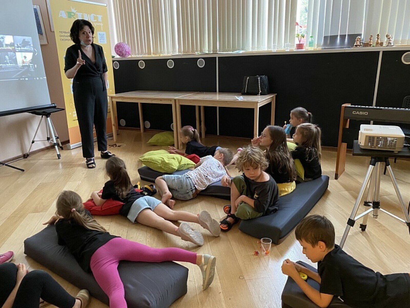 Творческий центр "Артист" расположен по адресу: 3-я фрунзенская, 19. Центр площадью 250кв.м имеет несколько залов и общие зоны для комфортного пребывания в течение дня.