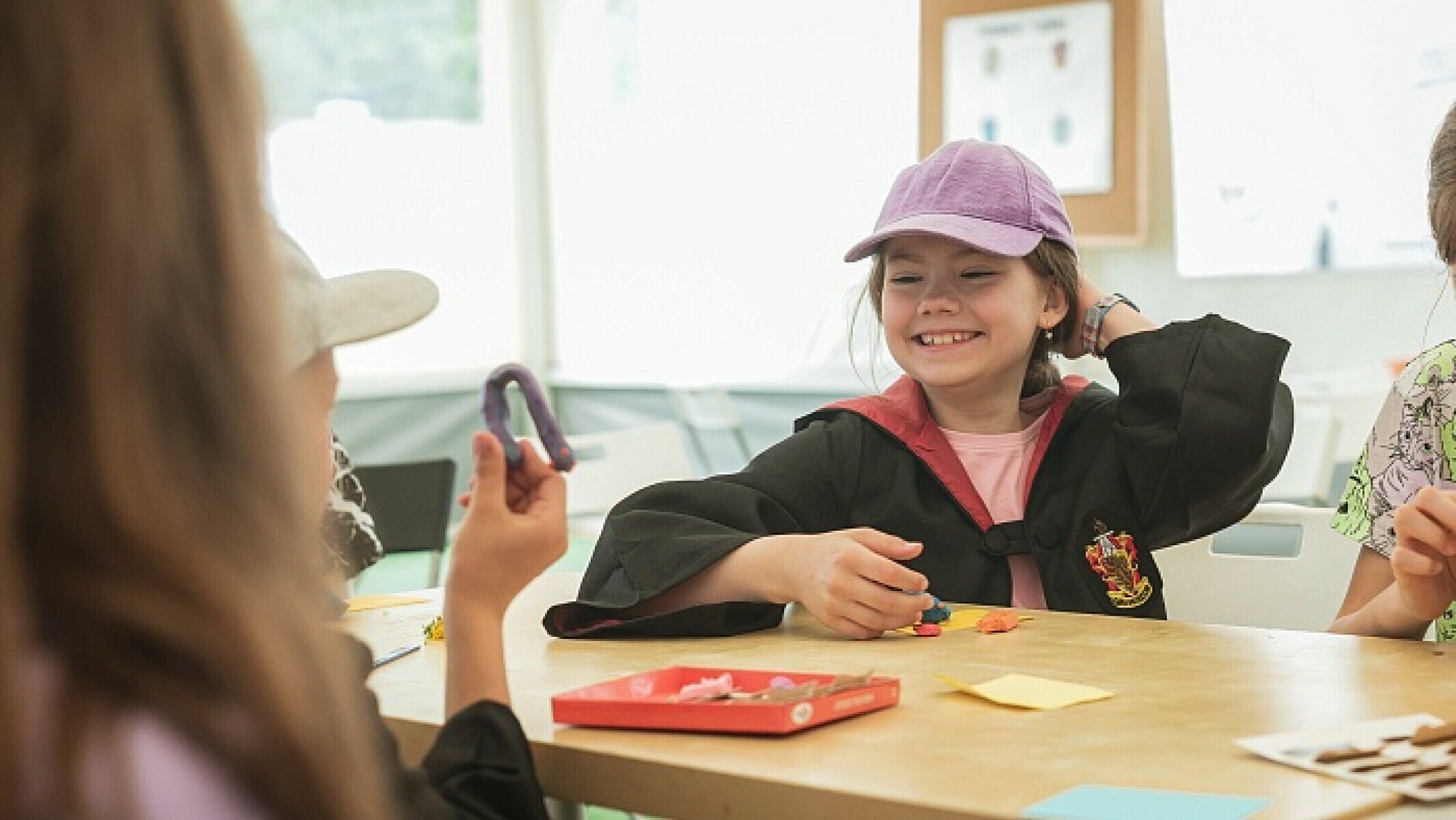 Основы магии и волшебства Юные волшебники научатся разгадывать тайные знаки и читать секретные послания. Еще ребята узнают простые законы магии, основанные на природе воды, огня и воздуха. А для закрепления материала каждый ученик Школы Хогвартс окрасит воду в разные цвета с помощью волшебной палочки и сможет погасить свечу, не задувая ее. Трансфигурация Волшебники освоят невероятный процесс превращения простых вещей в удивительные. Только с помощью своих магических рук и бумаги ребята создадут необыкновенные произведения искусства и освоят техники handmade, декупаж и квиллинг. Факультатив по Квиддичу Волшебники познакомятся с историей любимой спортивной игры всех магов, узнают ее правила и примут участие в своем первом турнире по Квиддичу!