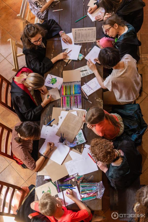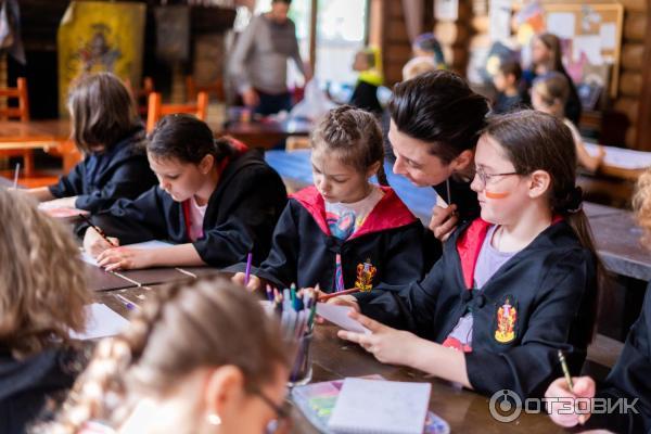 Создана атмосферная обстановка, антураж сказочный, дети всегда чем-то, поэтому не сидят в телефоне весь день. Недостатки: плохая мобильная связь на месте.В общем, нас с мужем все устроило: организация, программа и обратная связь. Были, конечно, моменты непонятные, но так всегда и везде бывает. Отправляя двоих дочерей, мы понимали, что они едут не на курорт, где с них будут пылинки сдувать и потакать их капризам. Мы осознанно решили, пусть дети побудут взрослыми и самостоятельными, все таки герои Гарри Потера тоже без родителей учились.